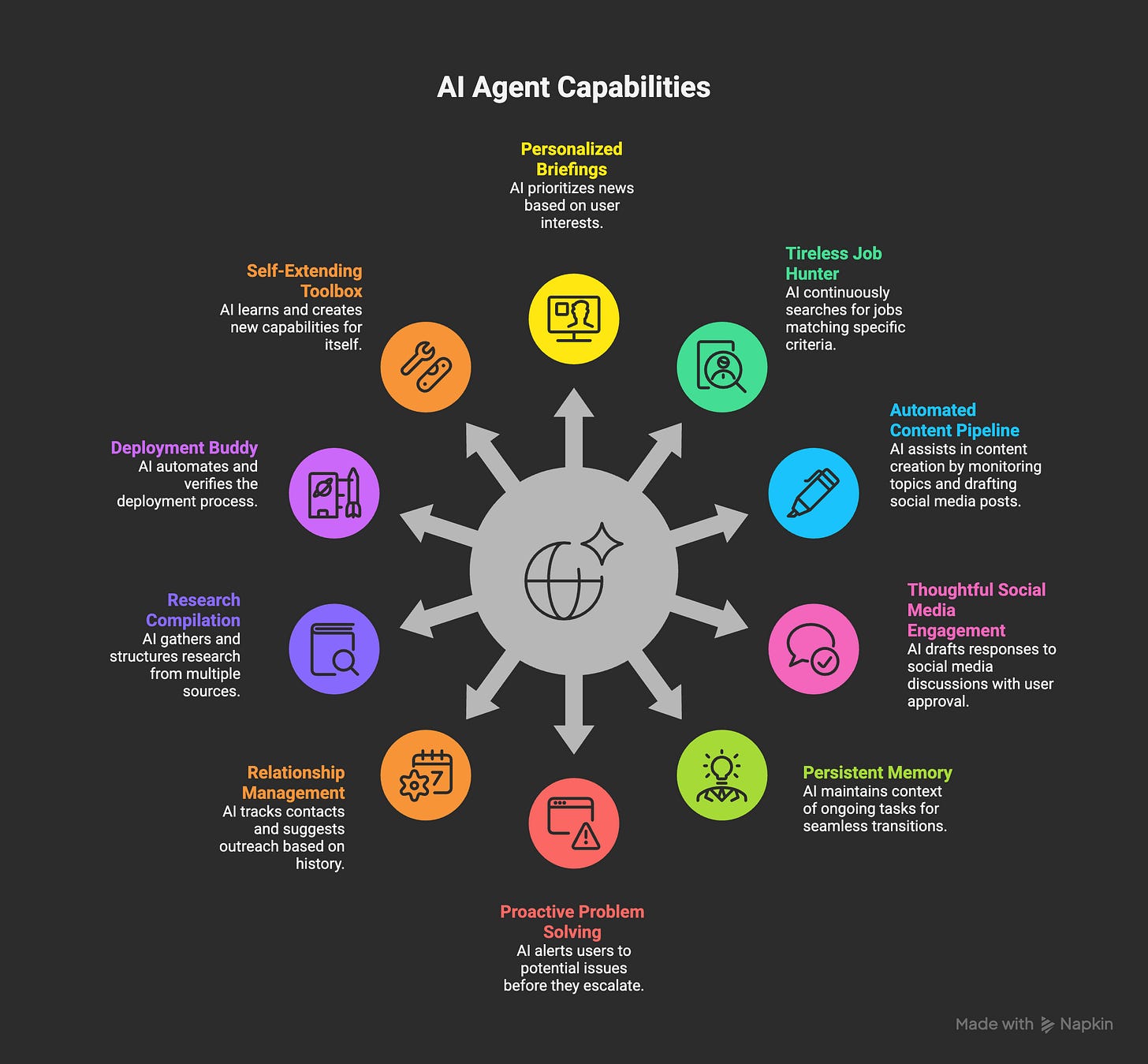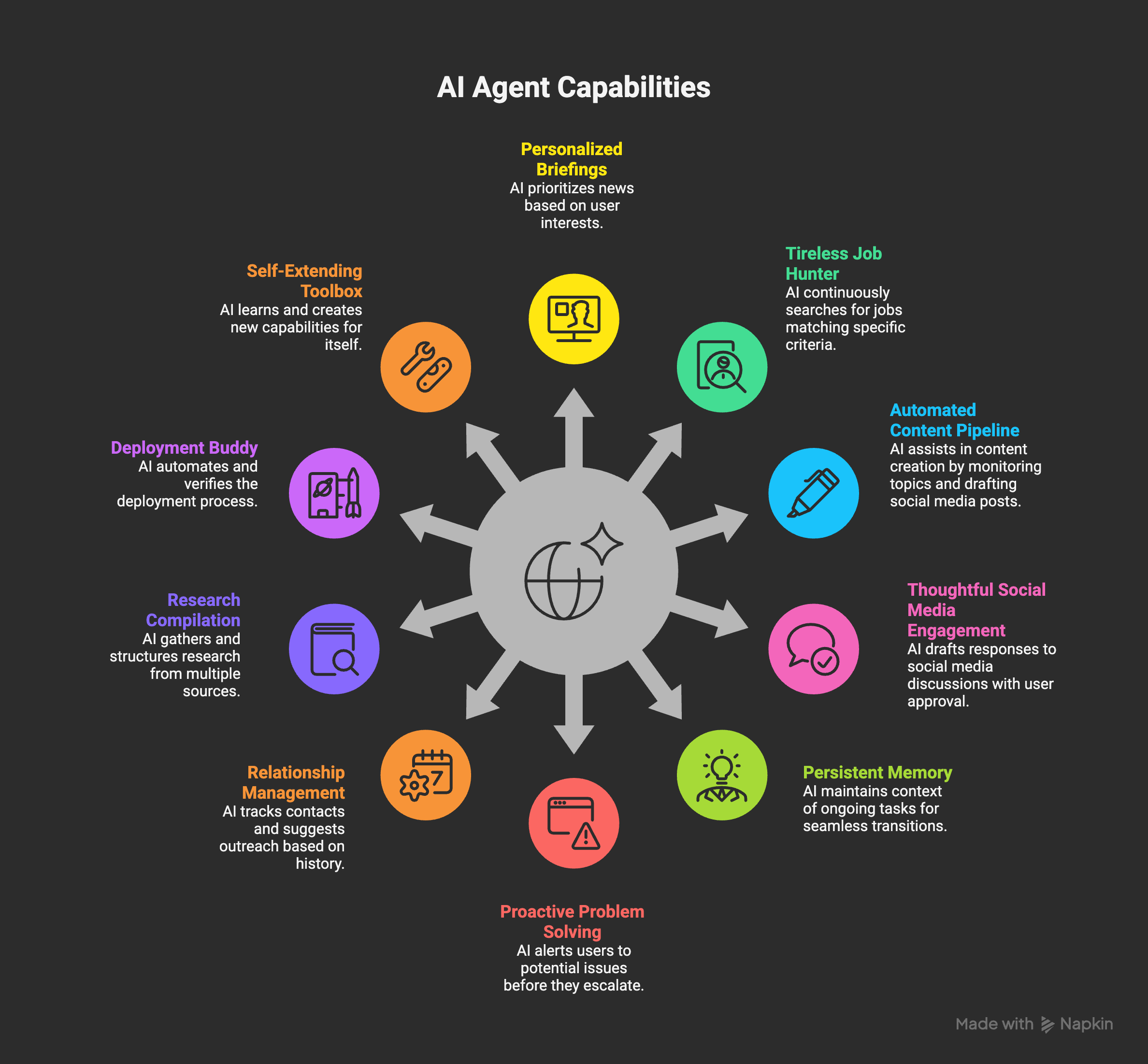 This means the agent grows with my needs. Instead of being limited to what I set up initially, it evolves.