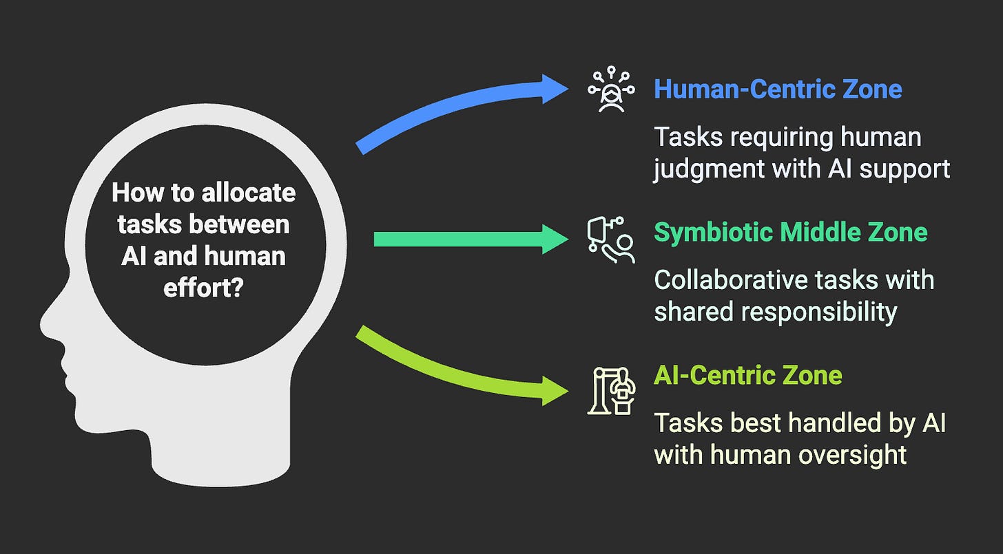 Human-Centric Zone: Human judgment is primary, AI provides supporting analysis or handles routine aspects