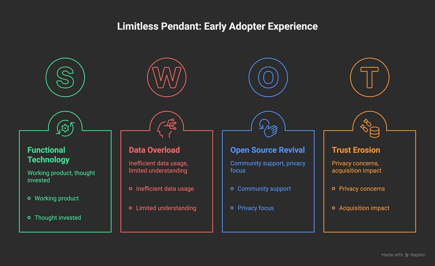 This isn’t a “Limitless was bad” post. The technology worked. The team clearly put thought into the product. In those early weeks, I genuinely believed I was using the future.