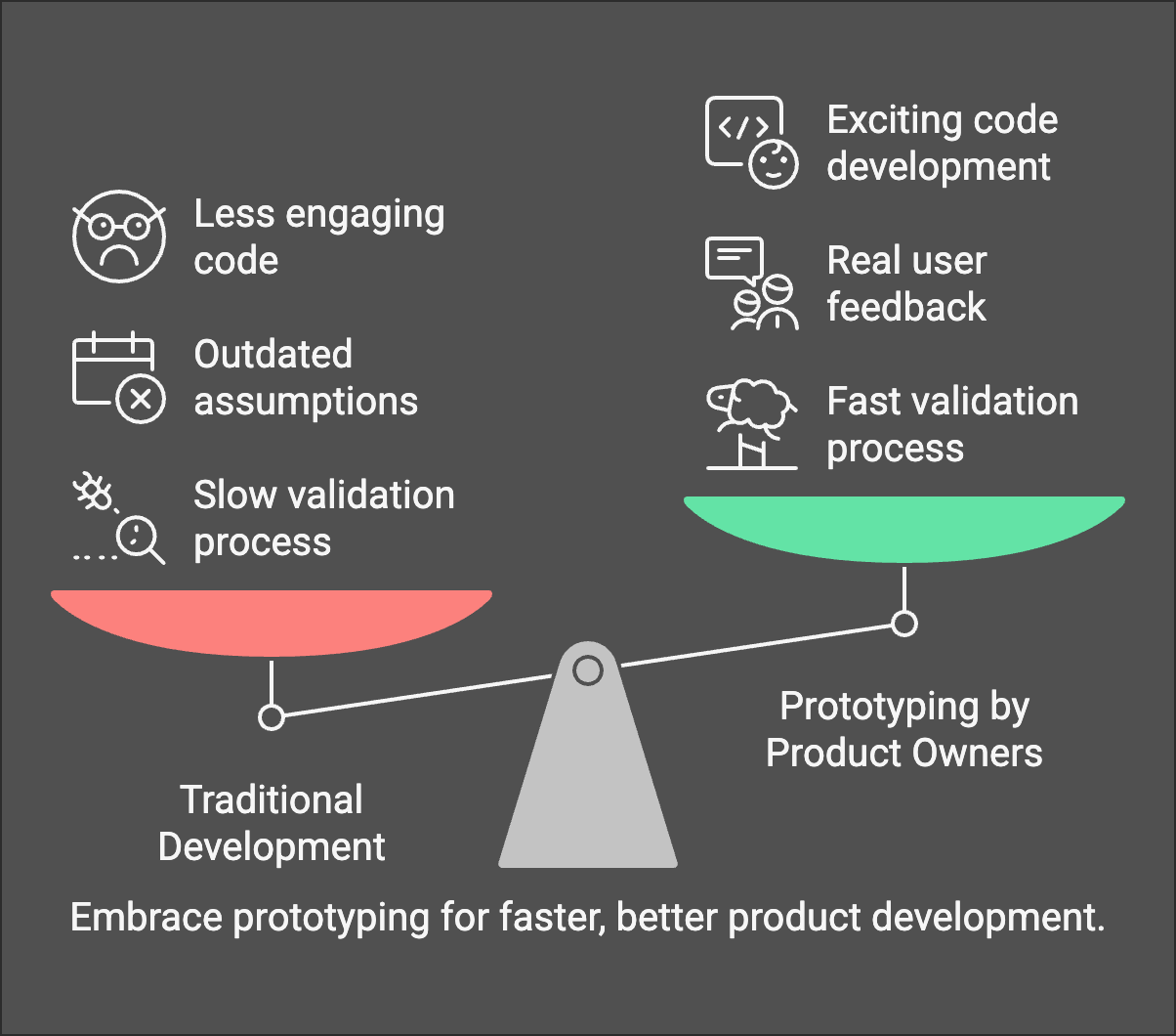 The tools we have now are INSANE. We're talking AI that writes better code than junior devs, no-code platforms that actually scale, and development environments that practically read your mind. As Product Owners, we're already doing so much of the groundwork - defining user stories, managing stakeholder expectations, understanding user needs... why aren't we taking that final step and building our initial prototypes ourselves?