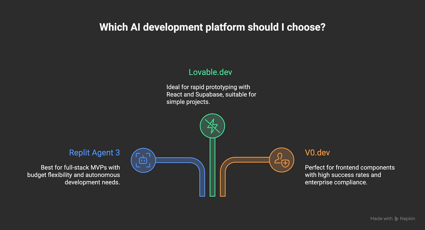 I’m actually planning to keep using all three platforms for different use cases. V0 for client UI work where I need clean components. Lovable for rapid prototyping when someone asks “can you show me what that would look like?” Replit for personal projects where I want to experiment with complete applications.