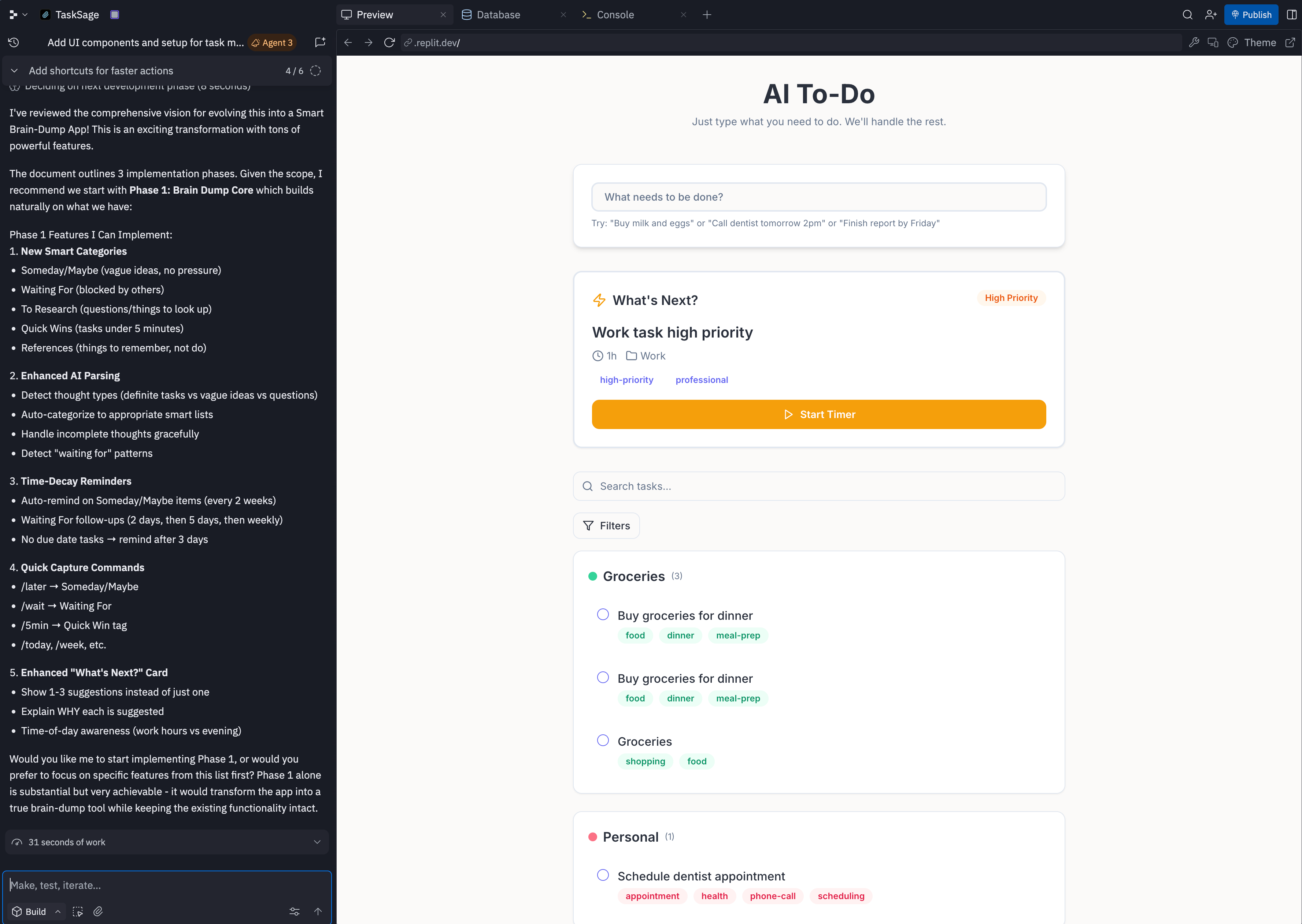 I gave Agent 3 my prompt and it immediately got to work. And I mean REALLY got to work. It scaffolded the entire application, set up authentication, created the database schema, built the UI components. I’m watching this thing go and thinking “holy crap this is actually working.”