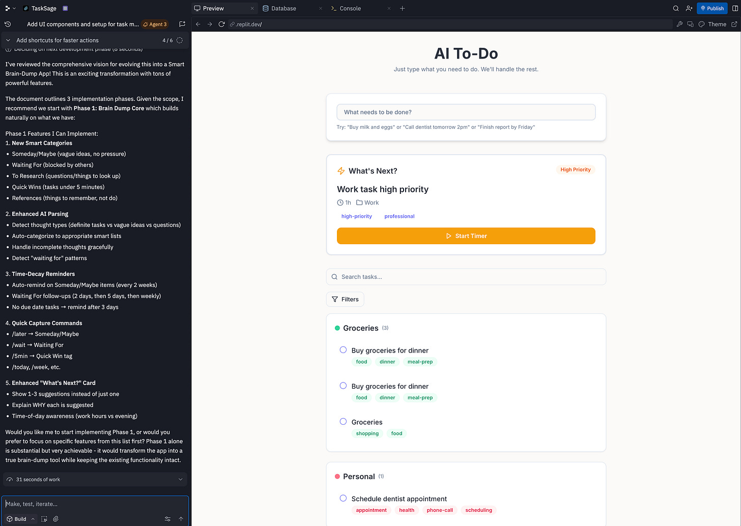 Replit Agent 3 is AMAZING for prototyping and MVPs. If you’re a solo founder who needs to validate an idea quickly and you have budget, this is genuinely game-changing. You can go from concept to working prototype in hours instead of weeks.