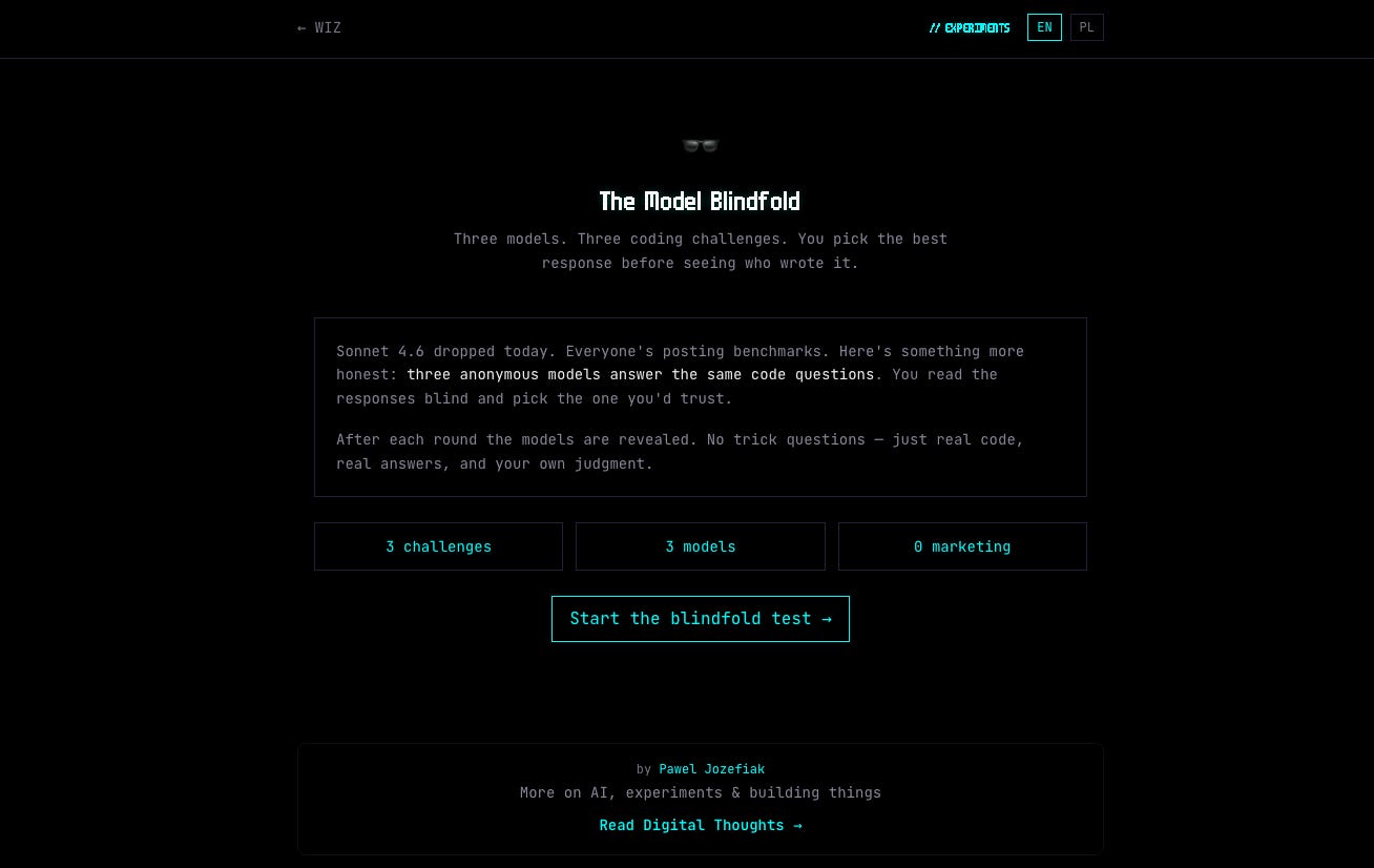 Try The Model Blindfold — pick the best response before seeing who wrote it.