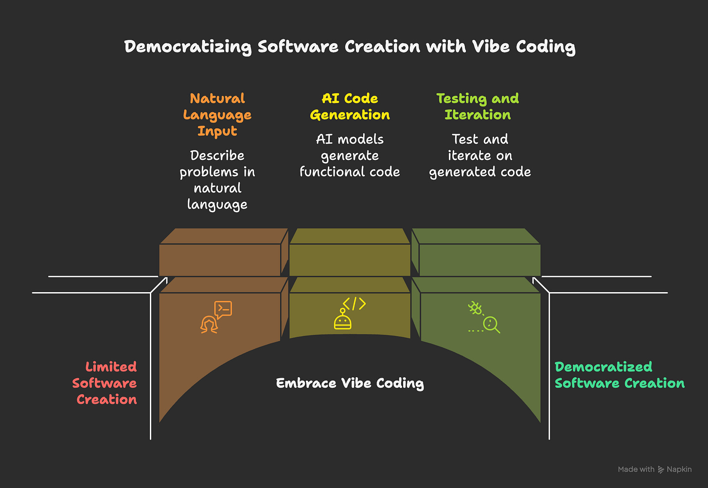 Phase 2 (2027-2030): Enterprise Democratization - This is the big one. A potential $40-300 billion market where business users create traditionally IT-dependent applications. This phase determines whether vibe coding becomes specialized or fundamental.